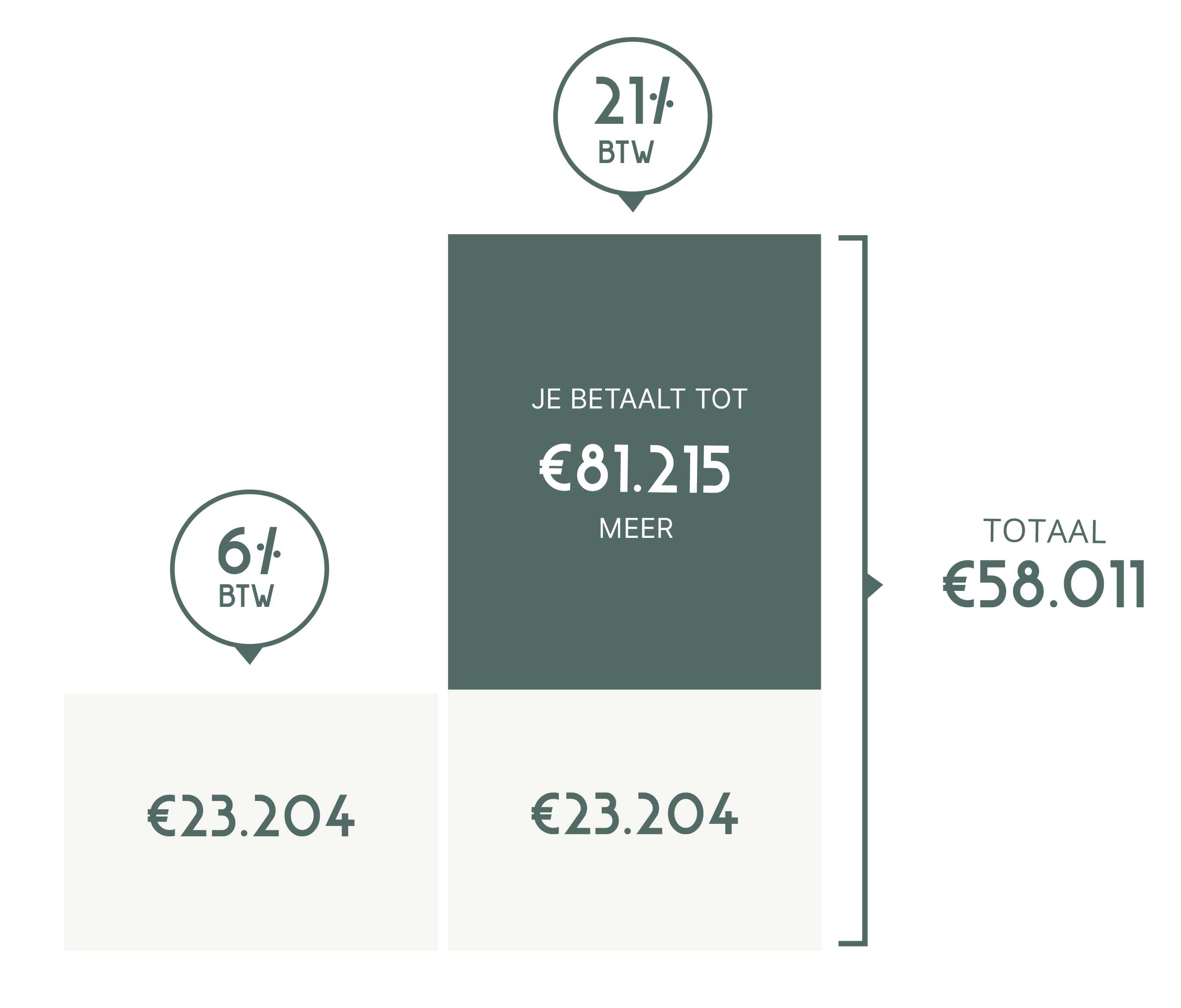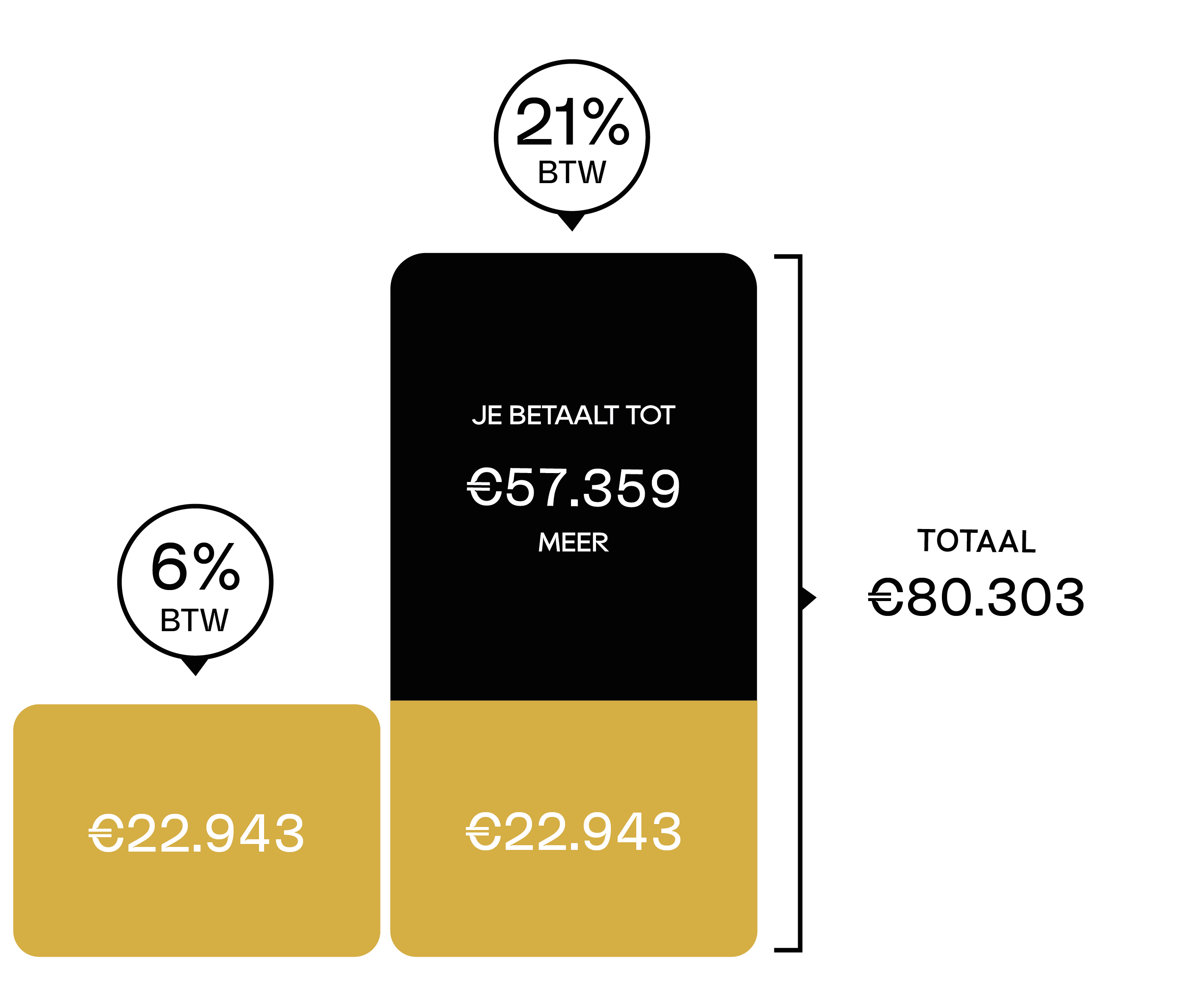 Wat er niet naar btw gaat, kan rechtstreeks naar wat jij belangrijk vindt: afwerking, comfort, en marge. De berekening hiernaast toont wat een concreet en voelbaar verschil dit brengt voor jouw aankoop.
